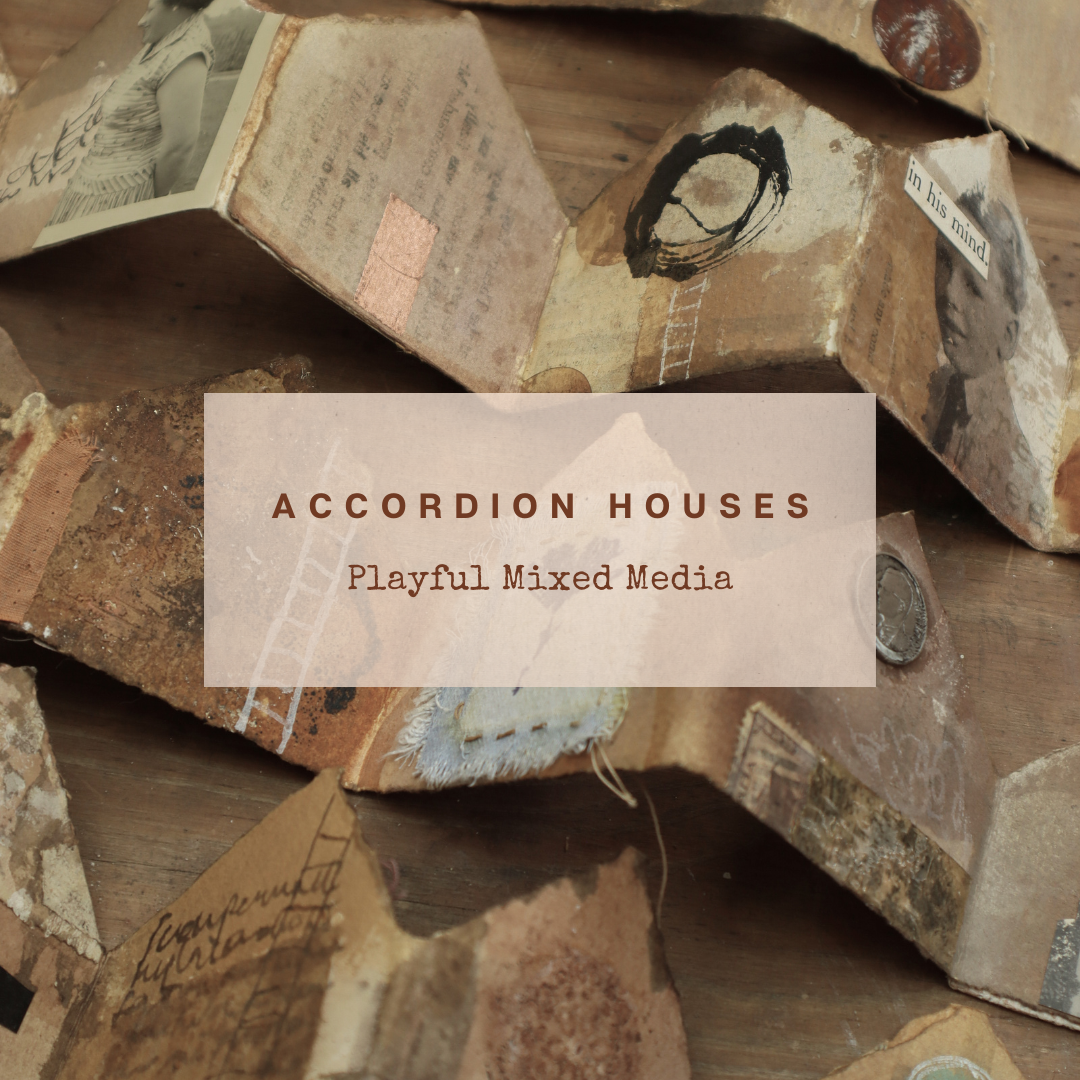 Create a small, accordion house book from a single sheet of watercolour paper, then explore layer after layer of mixed media techniques: dyes, inks, collage, texture paste, image transfers, stitching, found objects and more.