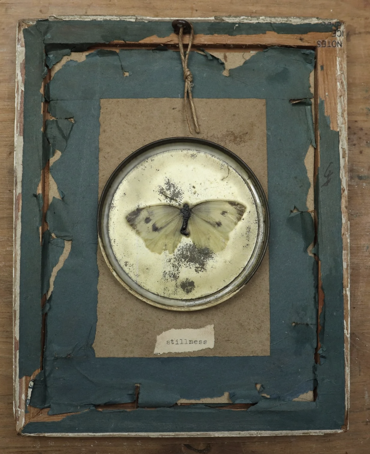 Butterfly, found frame, tin and encaustic medium